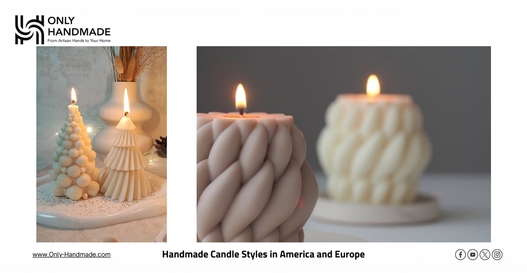 Candle preferences differ between American and European markets, and at Only Hand Made we keep up with both trends to bring you a diverse selection. In the U.S., larger candles in glass jars with bold, distinctive fragrances are popular. In Europe, the emphasis is on minimalistic elegance, with natural scents inspired by flowers and herbs. We bring you the best of both worlds — whether you’re drawn to bold American designs or refined European style.